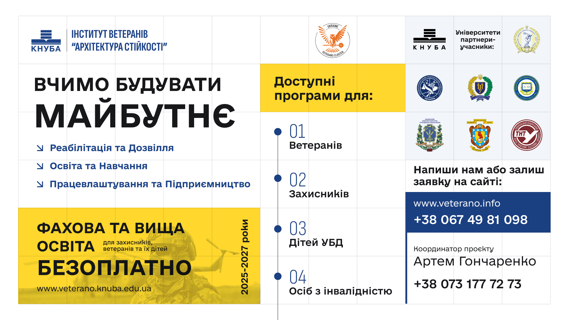 📩 honcharenko.av@veterano.info | veterano@knuba.edu.ua