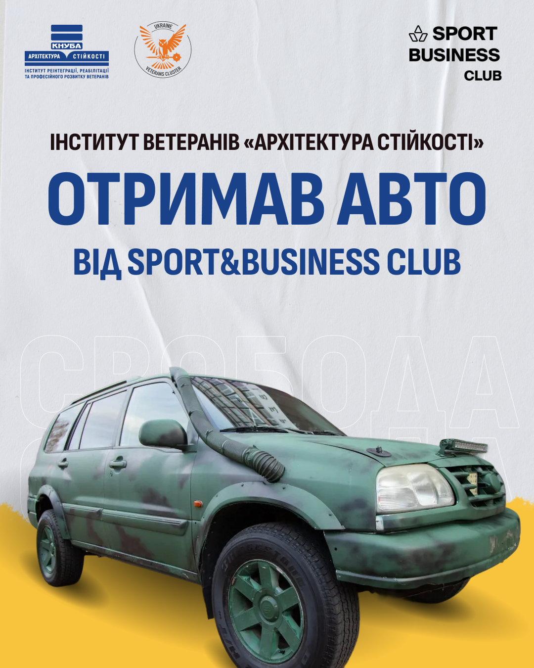 Авто передали в рамках благодійної діяльності на підтримку ветеранів. Ректор КНУБА Олексій Дніпров подякував за активну участь бізнесу і наголосив, що такі проєкти дають університету можливість всебічно підтримувати ветеранів, відкривати нові можливості для їхньої самореалізації. Керівник Інституту ветеранів Артем Гончаренко зауважив, що наявність автомобіля допоможе покращити мобільність ветеранів, які цього потребують, під час навчання та реабілітації. За словами СЕО Sport&Business Club Олексія Браги, підтримка реабілітації та професійного розвитку ветеранів принципове питання. Кошти на автівку зібрали завдяки проведенню благодійних аукціонів зі спортивними лотами, також члени Клубу та учасники заходів робили свої внески.