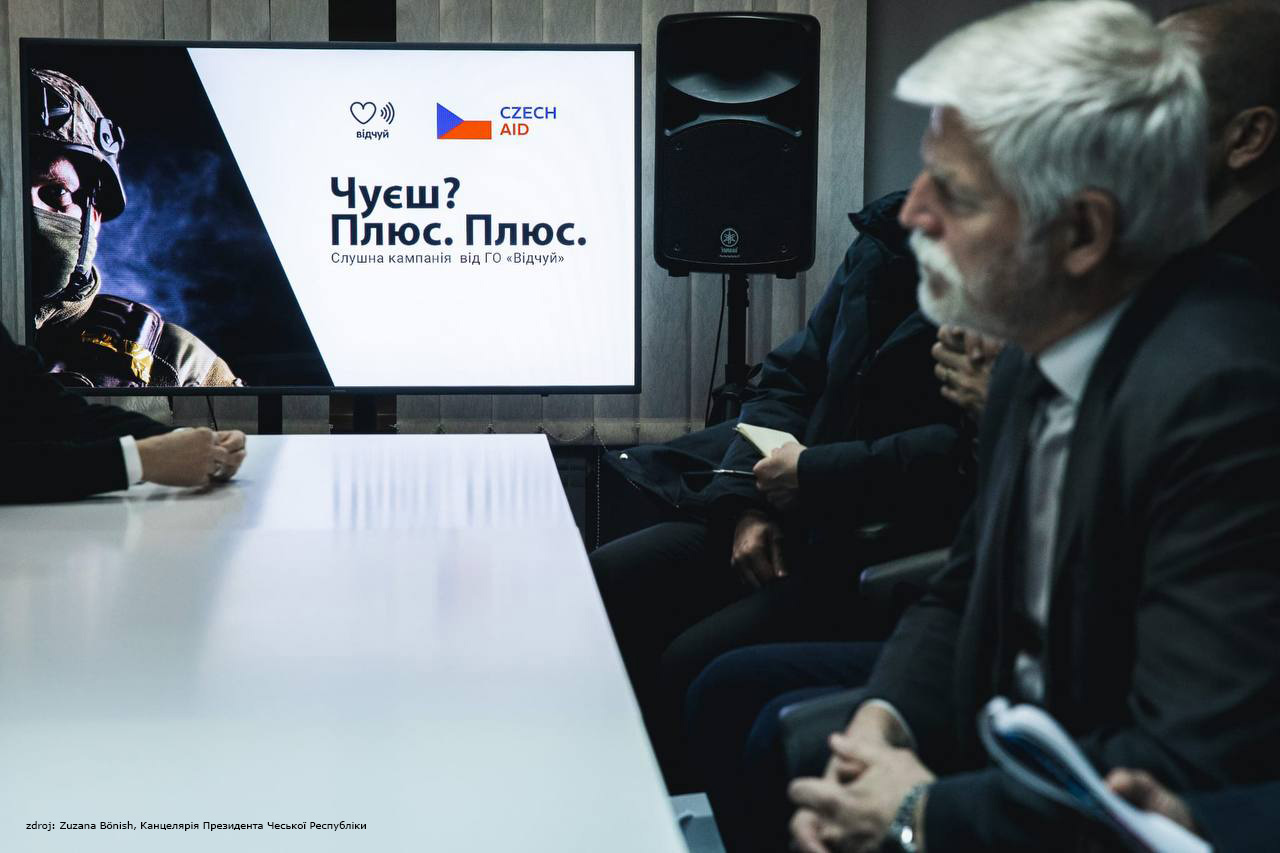 Під час візиту Президент Чехії поспілкувався з двома ветеранами — Вадимом та його сином Даніїлом Гончаренками, які отримали комплексну підтримку від громадської організації «Відчуй» у межах проєкту «Чуєш? Плюс. Плюс.». Зустріч дала змогу безпосередньо почути їхній досвід та обговорити значення реабілітації слуху як важливого чинника повернення до повноцінного та активного життя.